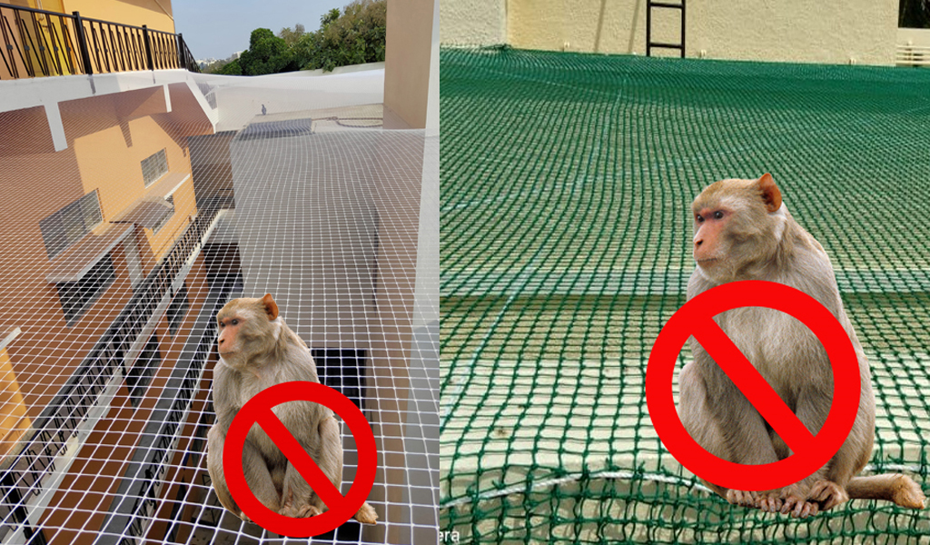 At SS Enterpricess, we understand the inconvenience and safety risks that monkey intrusions can cause—from damaging property to creating health and safety concerns. Our monkey safety nets are tailored to cover balconies, windows, terraces, open ducts, and other exposed areas, effectively preventing monkeys from entering the premises while allowing free flow of air and natural light.